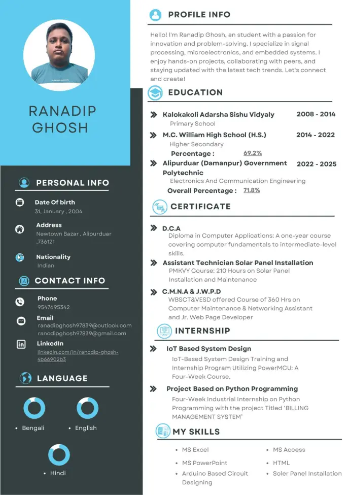 I’m Ranadip Ghosh. I’m pursuing Electronics and Communication Engineering and Political Science, driven by curiosity that refuses to stay in one field. My work and research explore how technology, politics, and human decisions shape each other in the real world. I believe in logic over noise, justice over convenience, and ideas that challenge the system rather than flatter it.